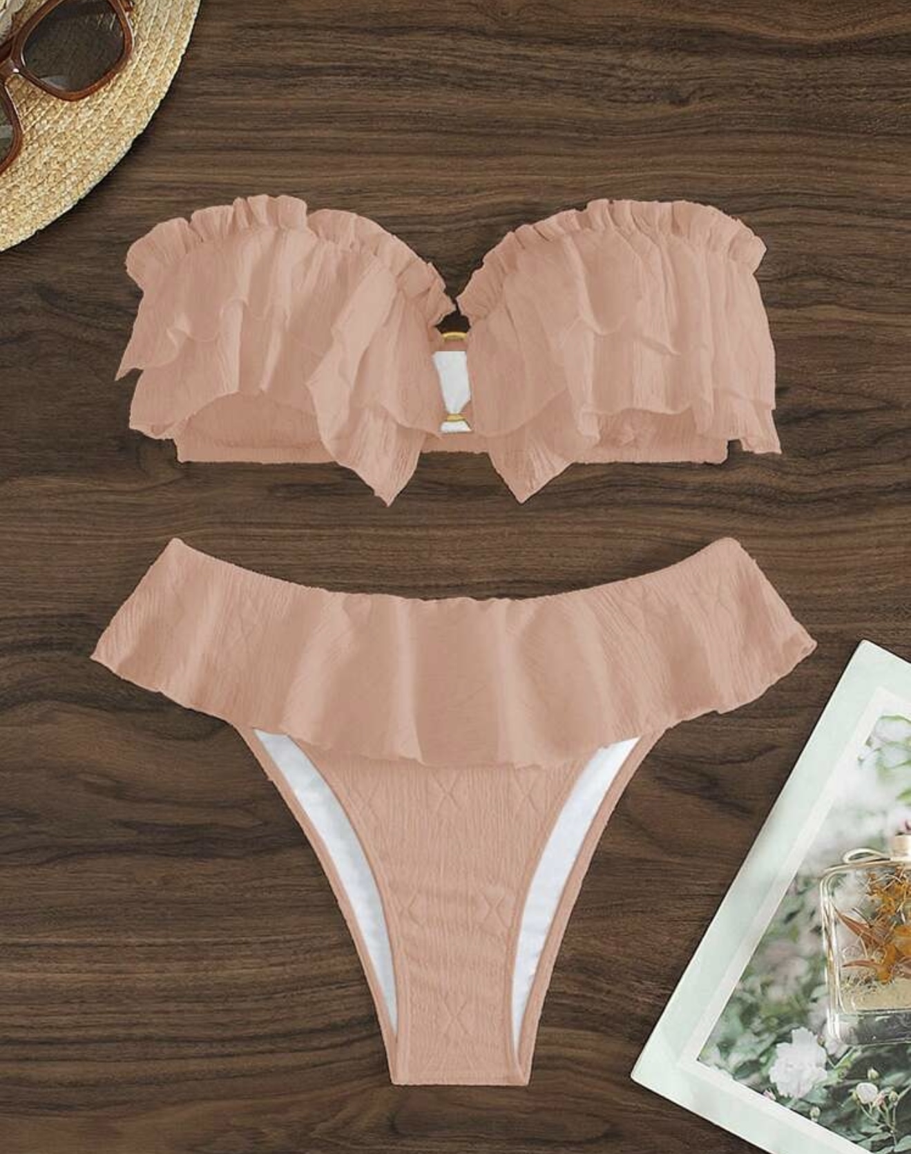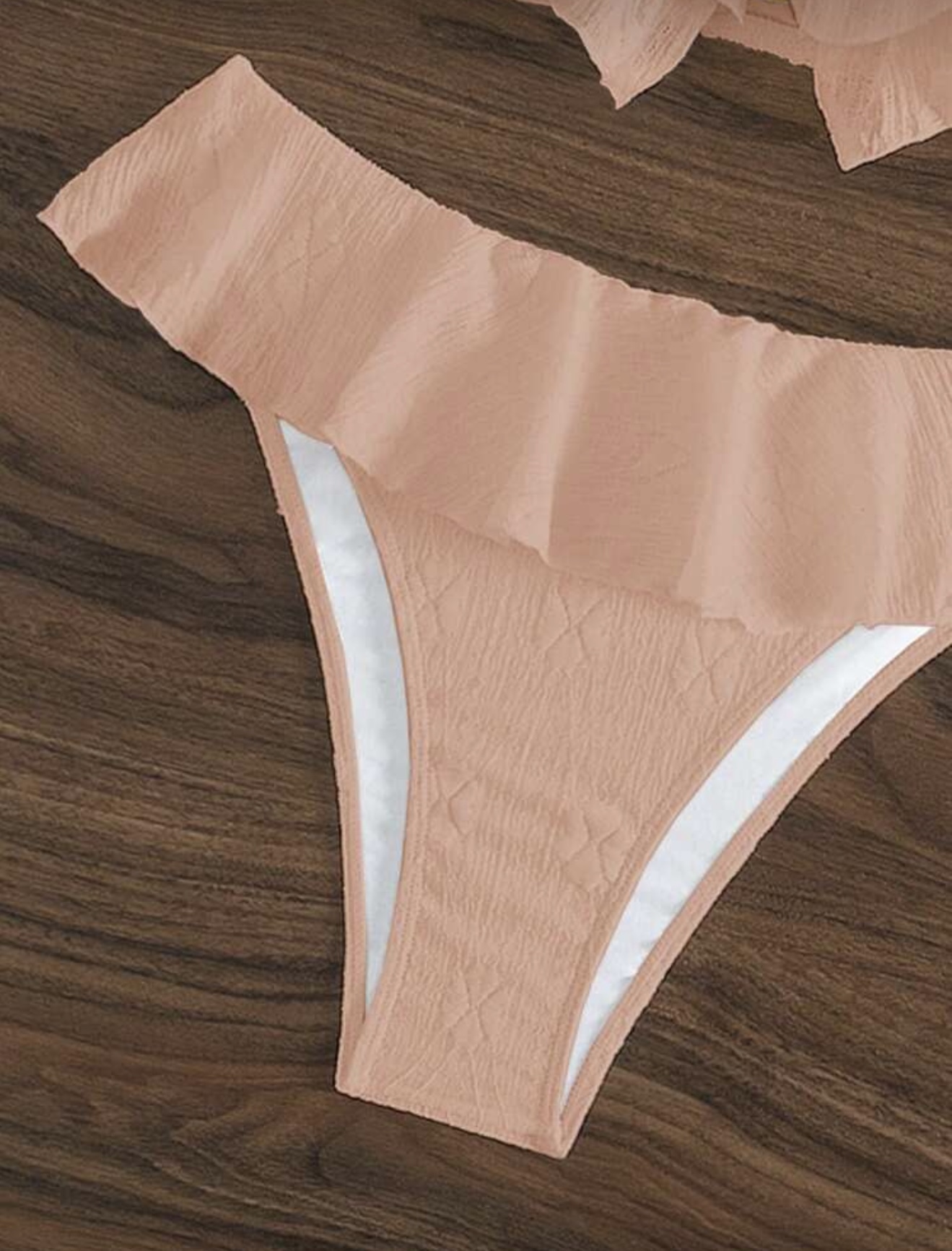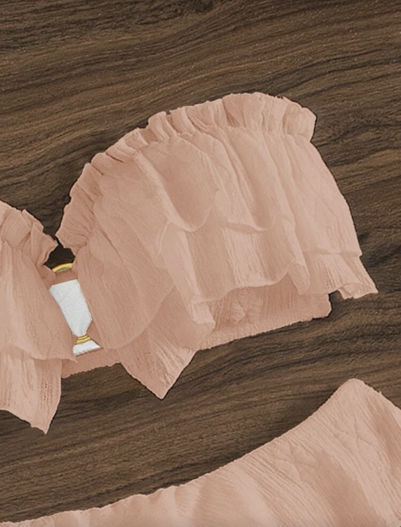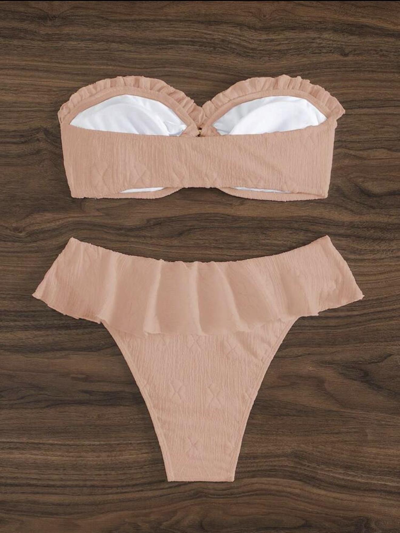 مایو بیکینی دو تکه صورتی کالباسی پر