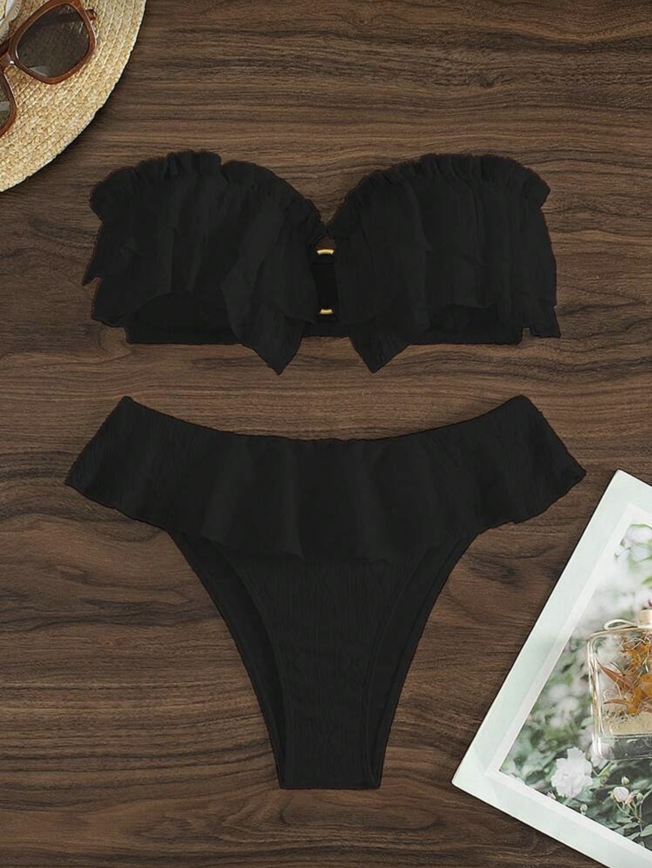مایو بیکینی دو تکه مشکی پر