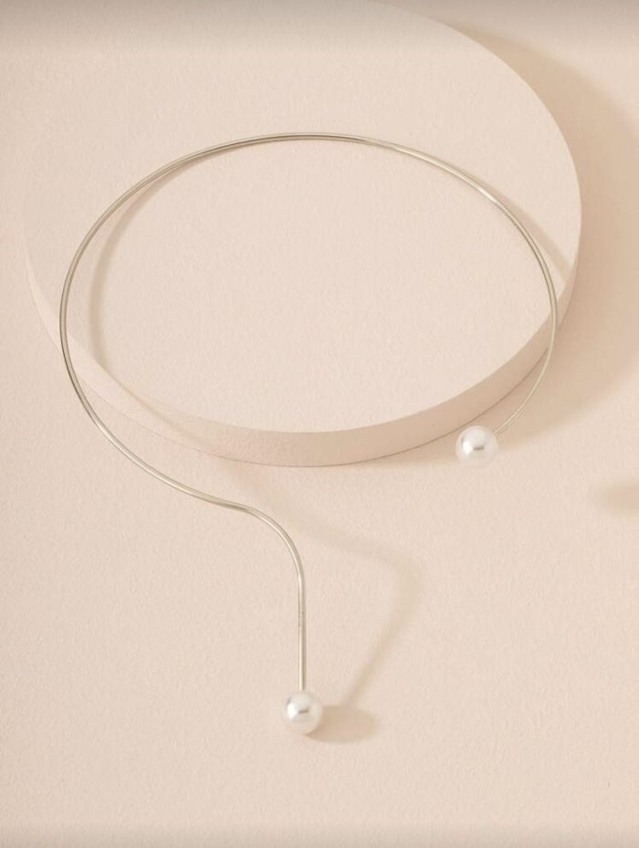 گردنبند چوکر مروارید نقره‌ای مینیمال – ترکیبی از سادگی و شیک‌بودن برای خانم‌های خوش‌سلیقه