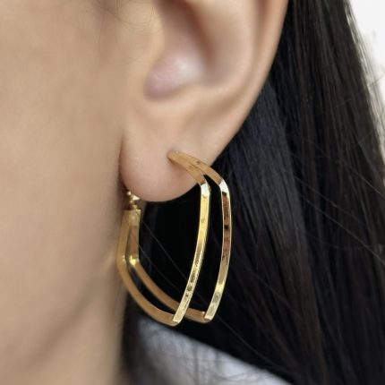 جنس این گوشواره از فلز مقاوم با آبکاری طلای براق است و کاملاً ضد حساسیت میباشد؛ بنابراین برای استفاده روزانه یا مجالس طولانیمدت، راحت و ایمن است.