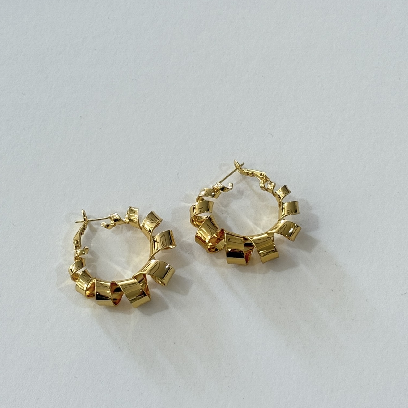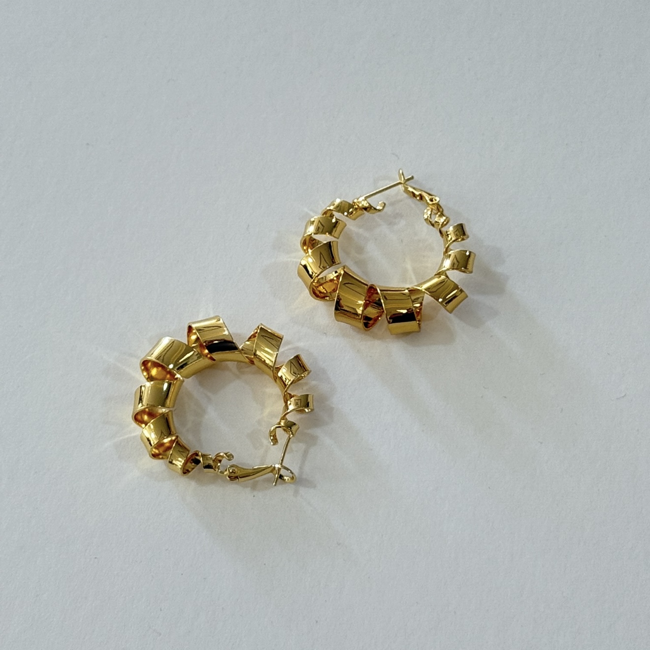 گوشواره حلقهای طلایی مدل روبانی، ترکیبی از طراحی خاص و درخشش لوکس است. این مدل با فرم نوارهای پیچخورده و براق ساخته شده که جلوهای مدرن و جذاب به استایل شما میبخشد.