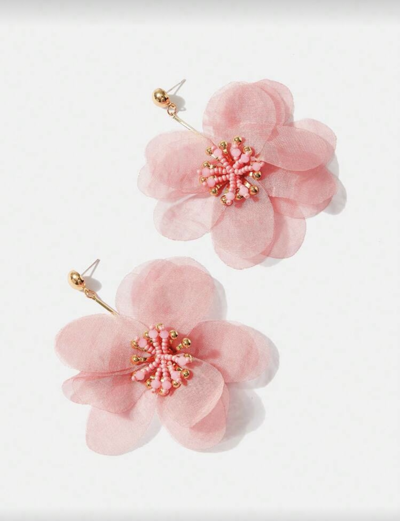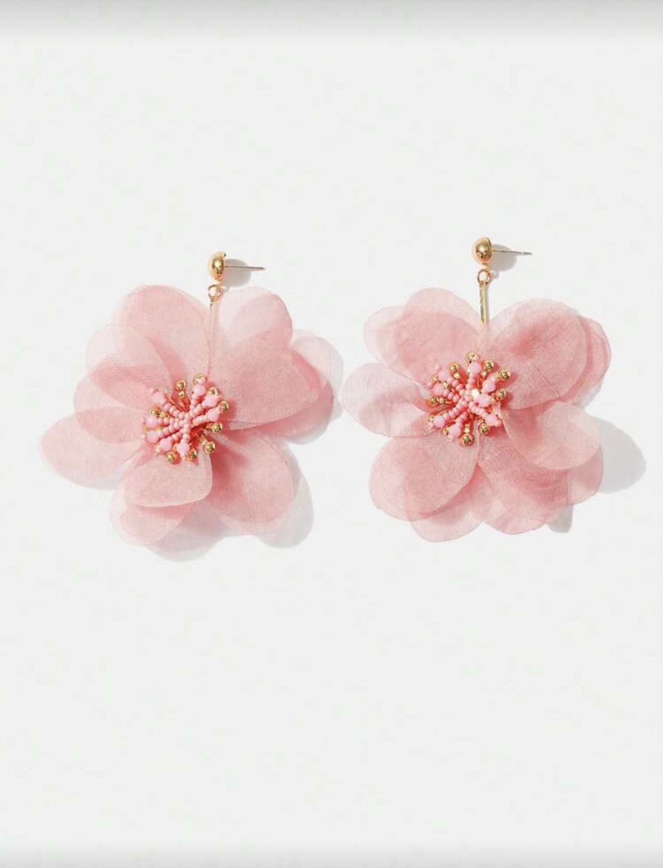 گوشواره فانتزی آویز پارچه ای گل یاس