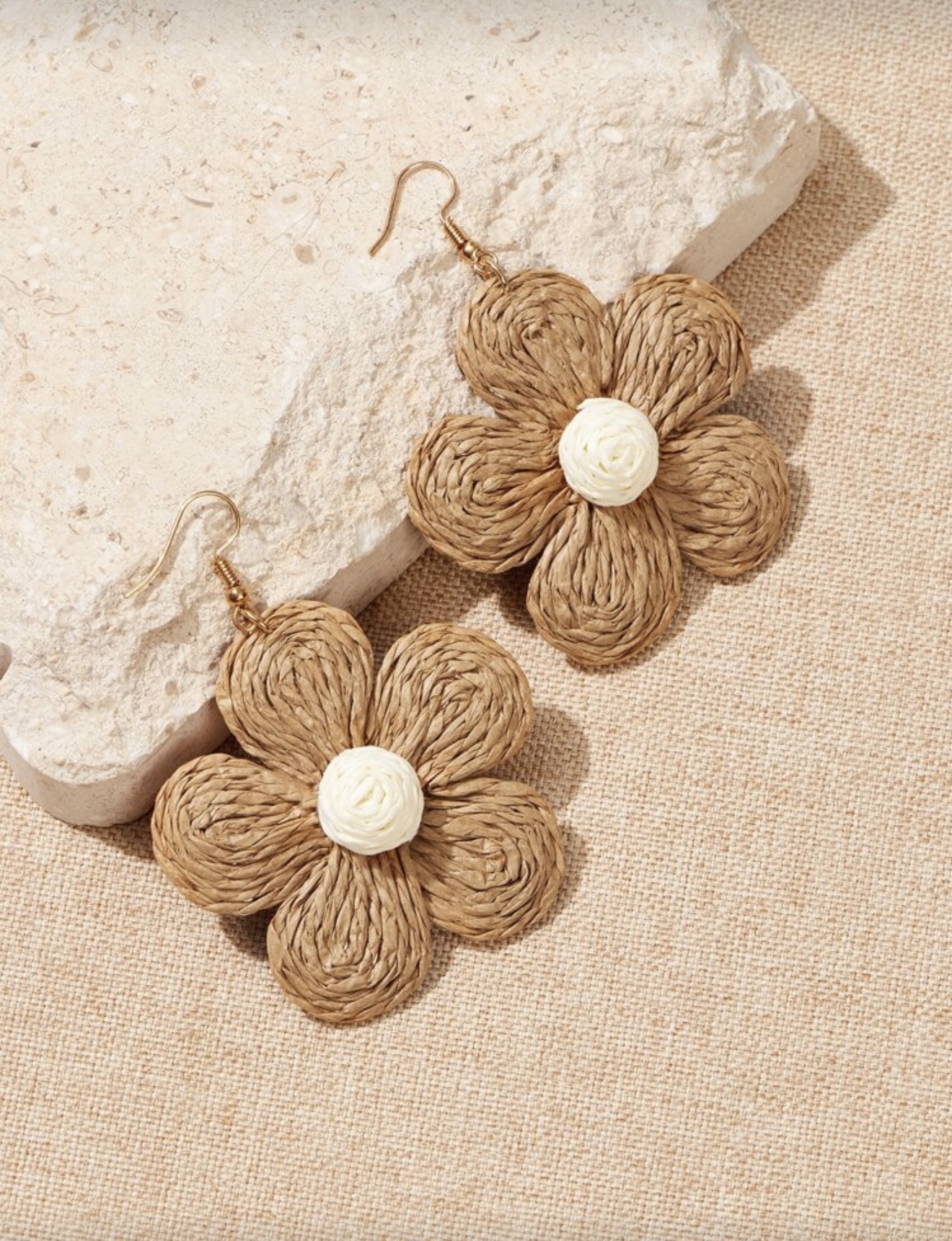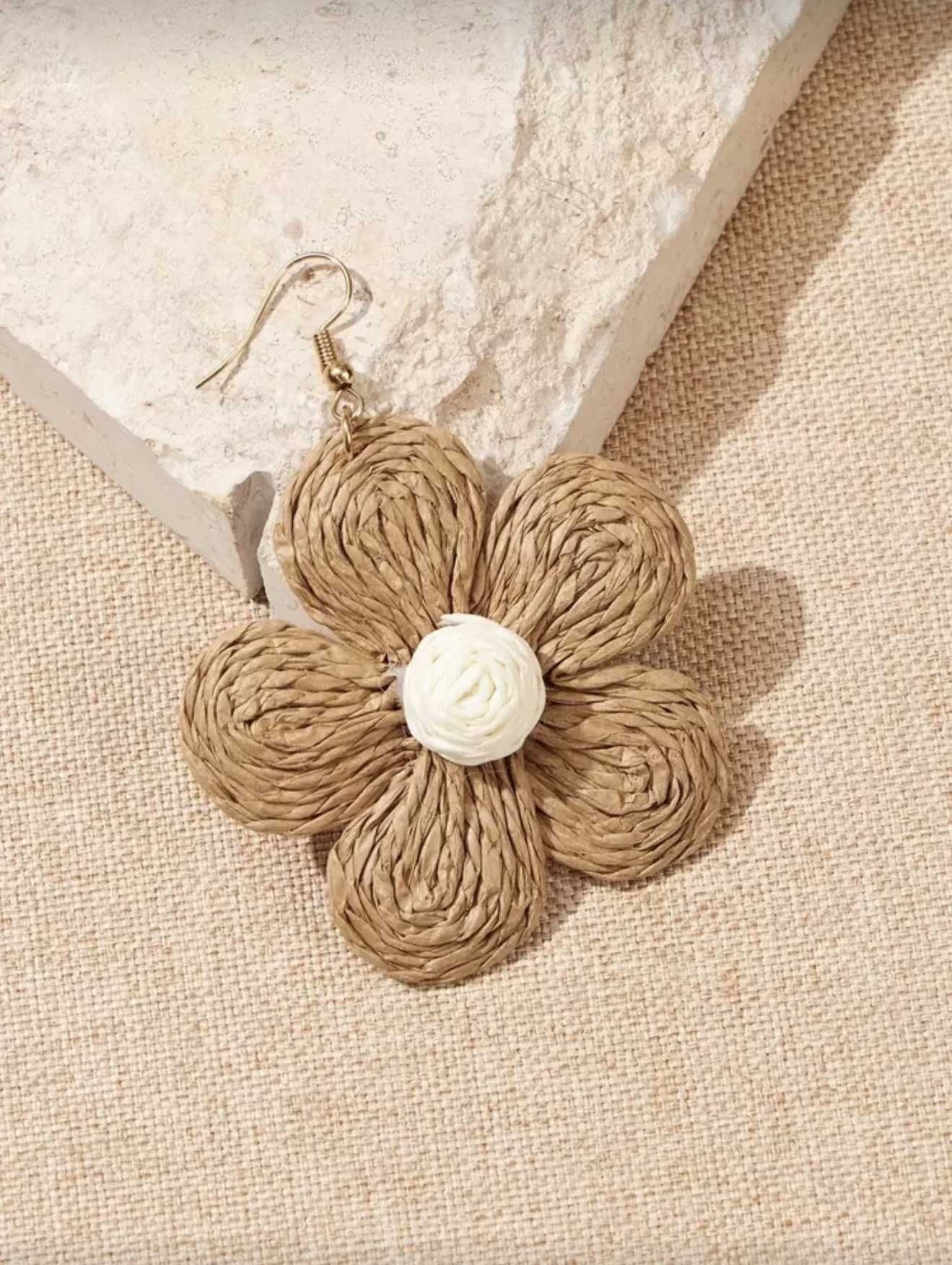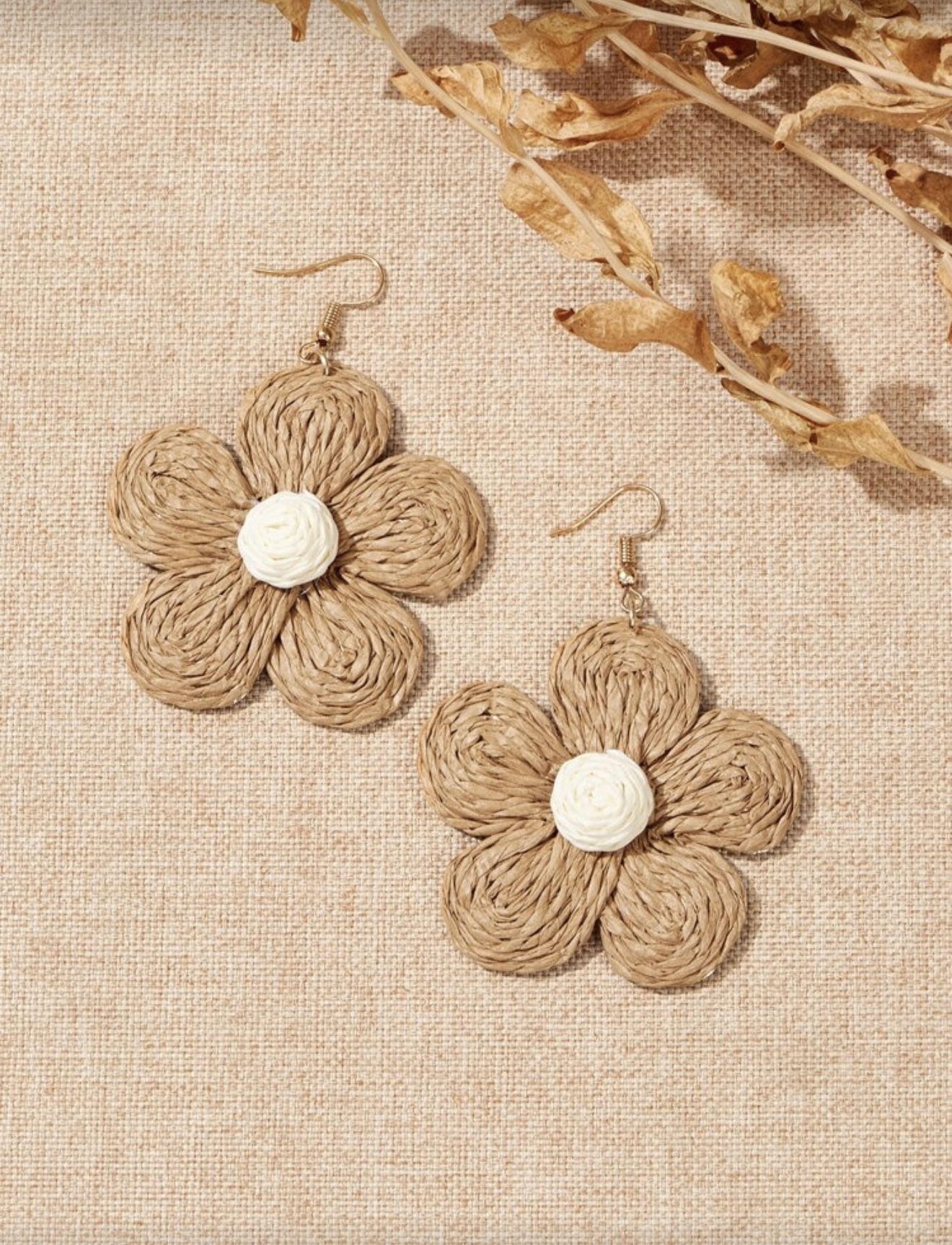 گوشواره آویز فانتزی حصیری گل زنانه