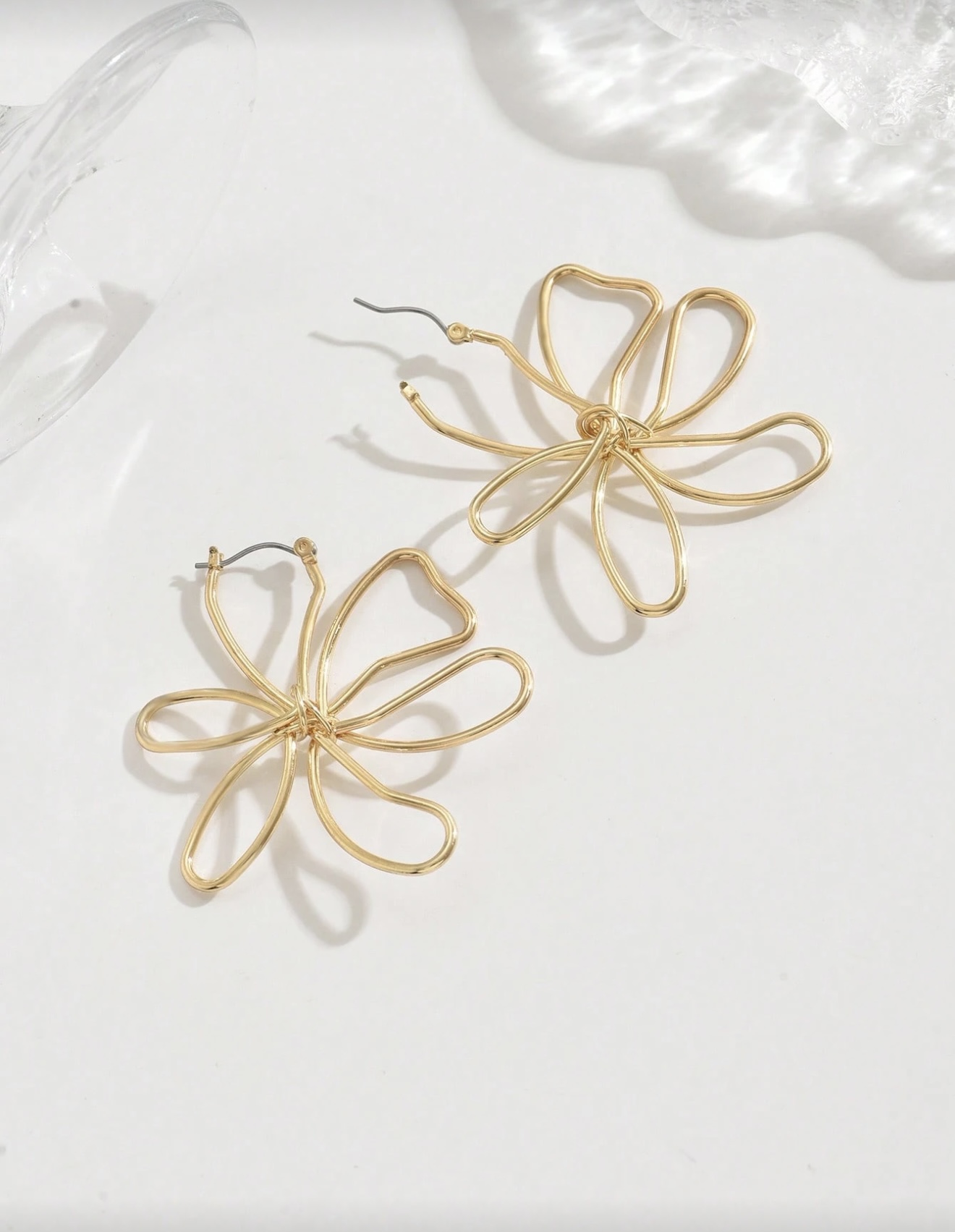 گوشواره فانتزی مینیمال گل طلایی ساده