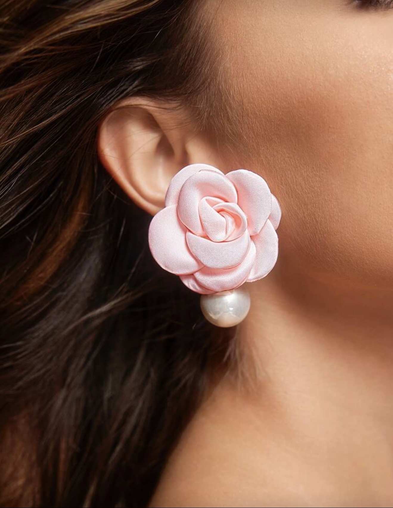 گوشواره فانتزی پارچه ای شکوفه گیلاس با مروارید
