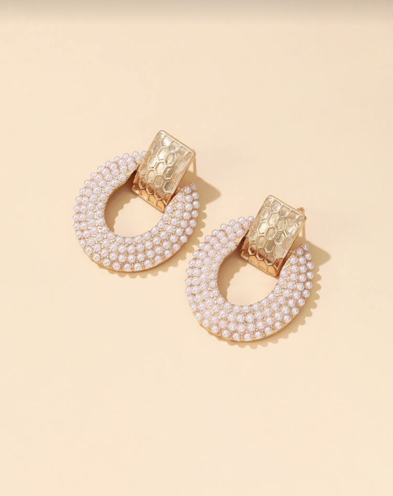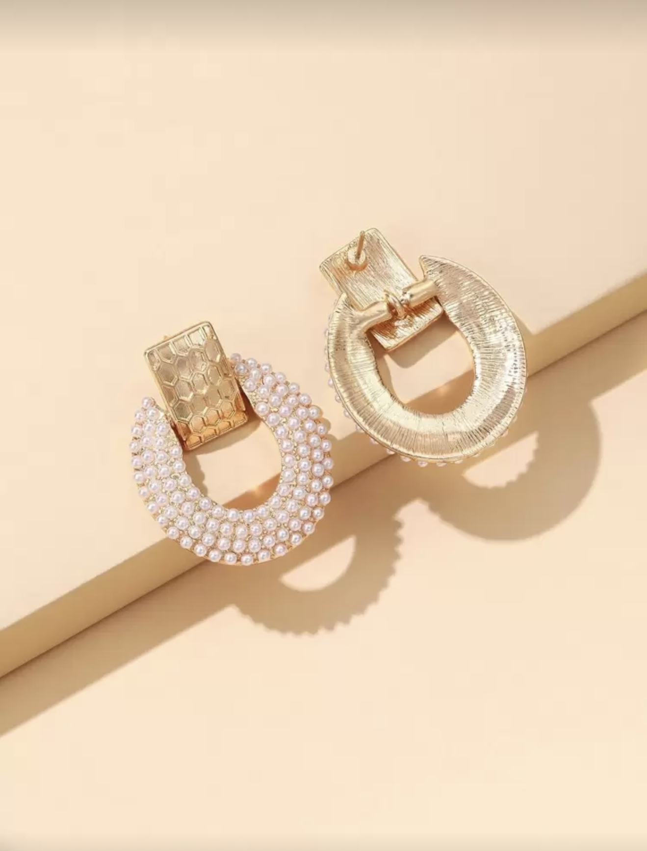 گوشواره مجلسی آویز طلایی مرواریدی لیزرد