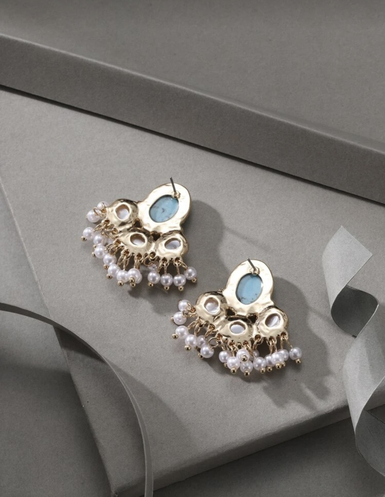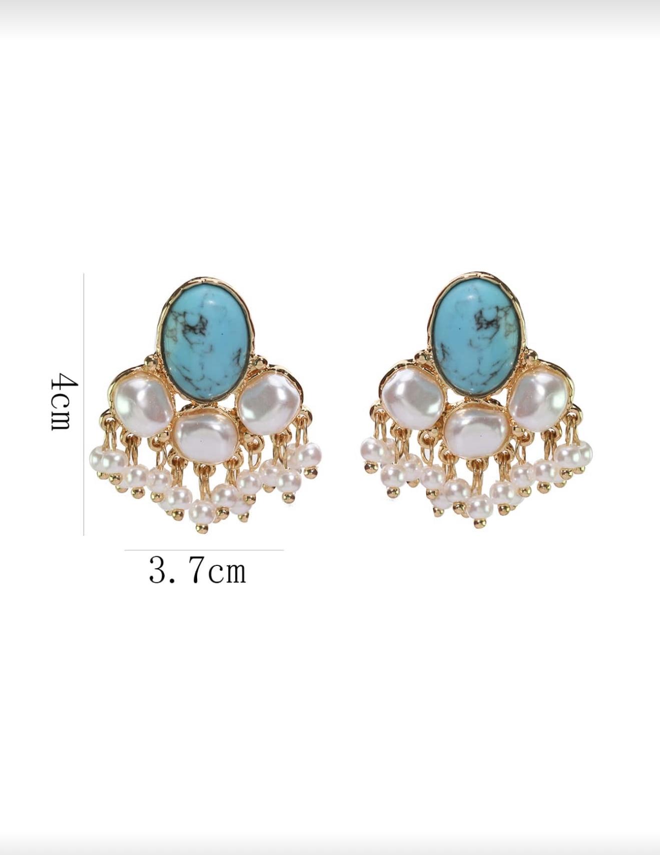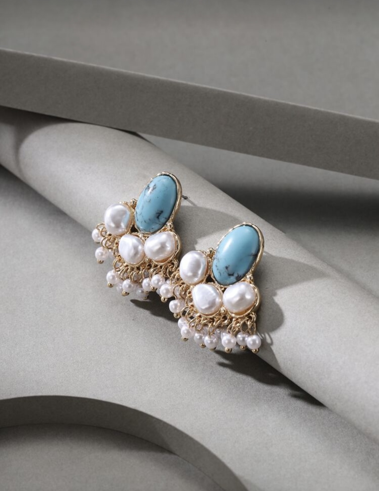 گوشواره مجلسی سنگ فیروزه و مروارید