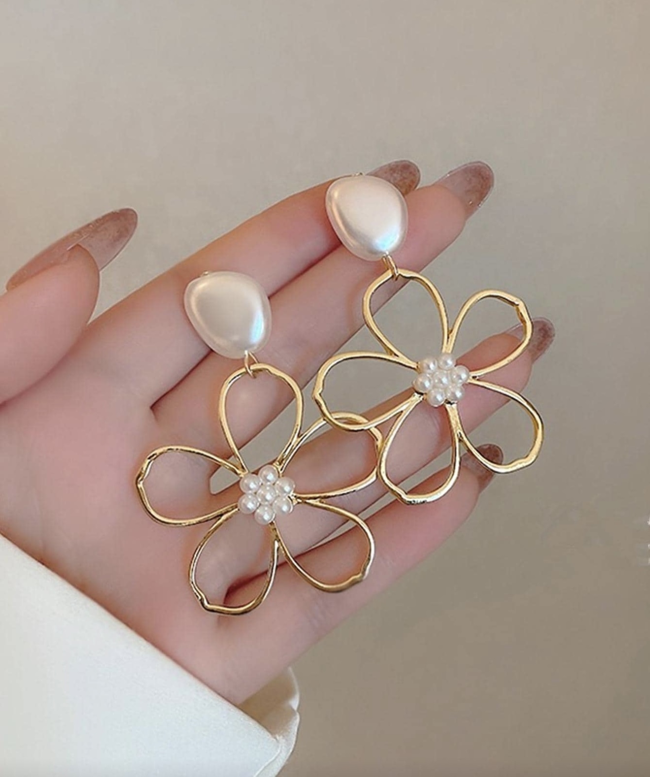 گوشواره گل توخالی آویز