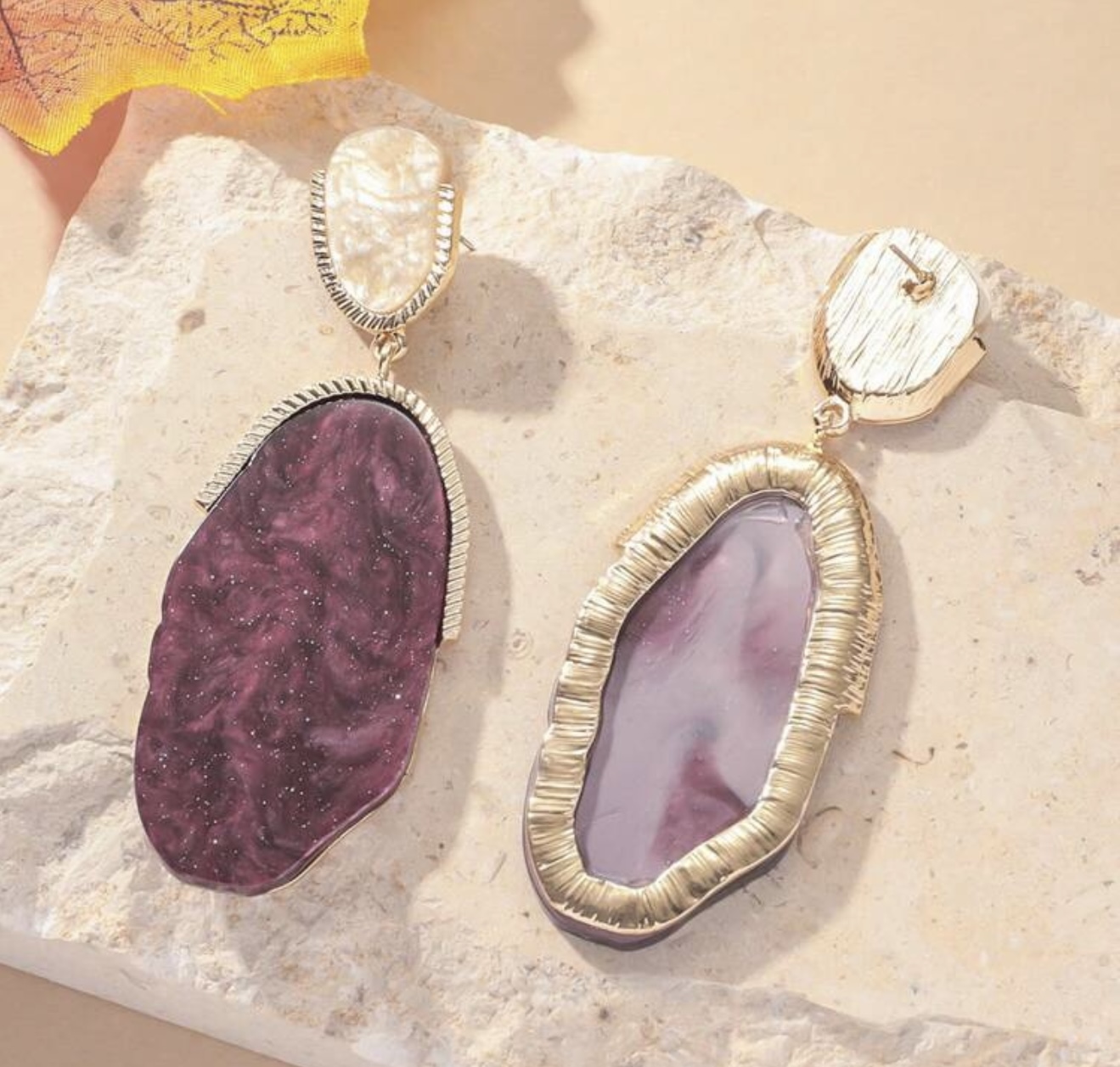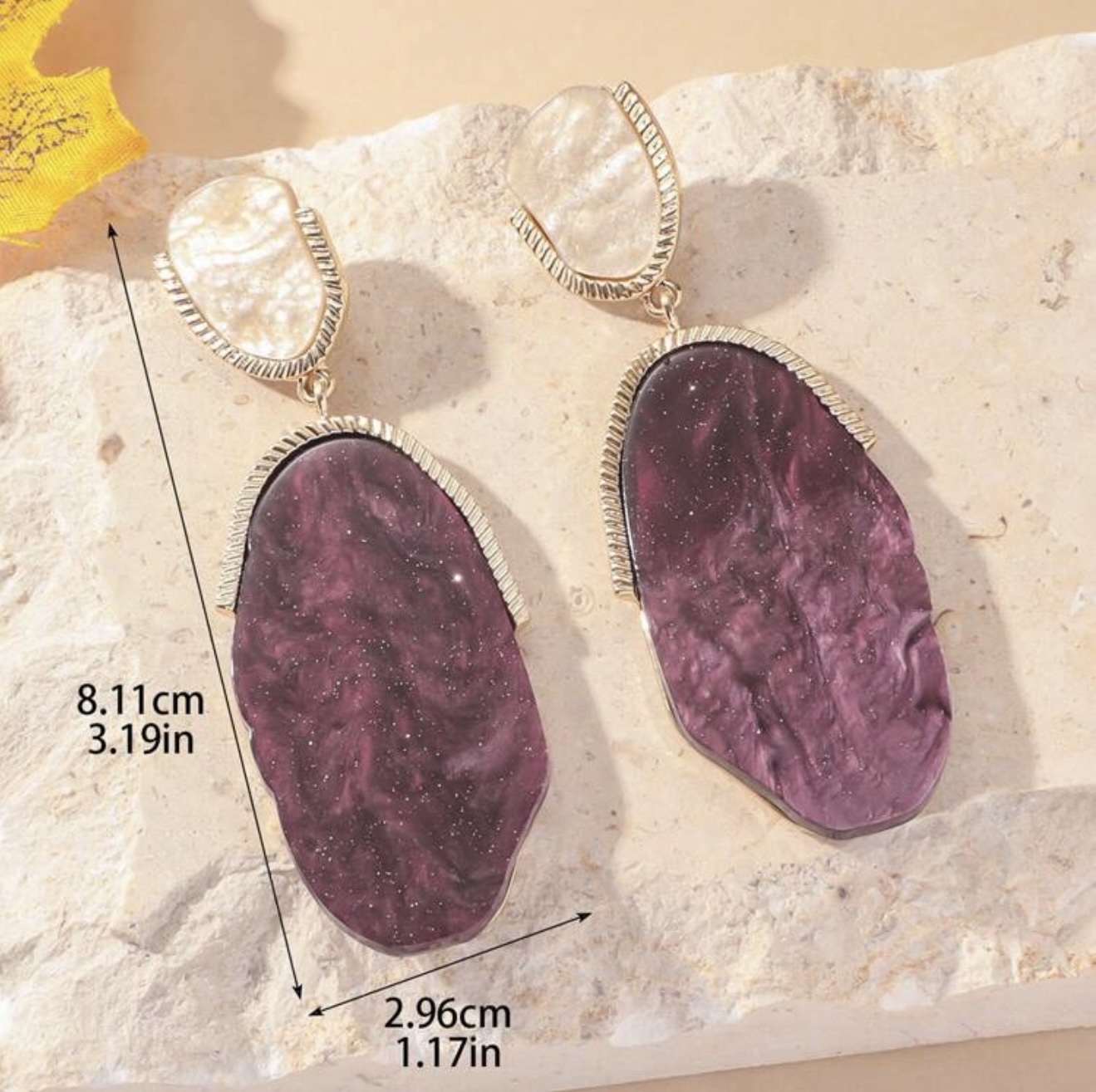 گوشواره مجلسی فانتزی آویز اوور سایز رزین بنفش