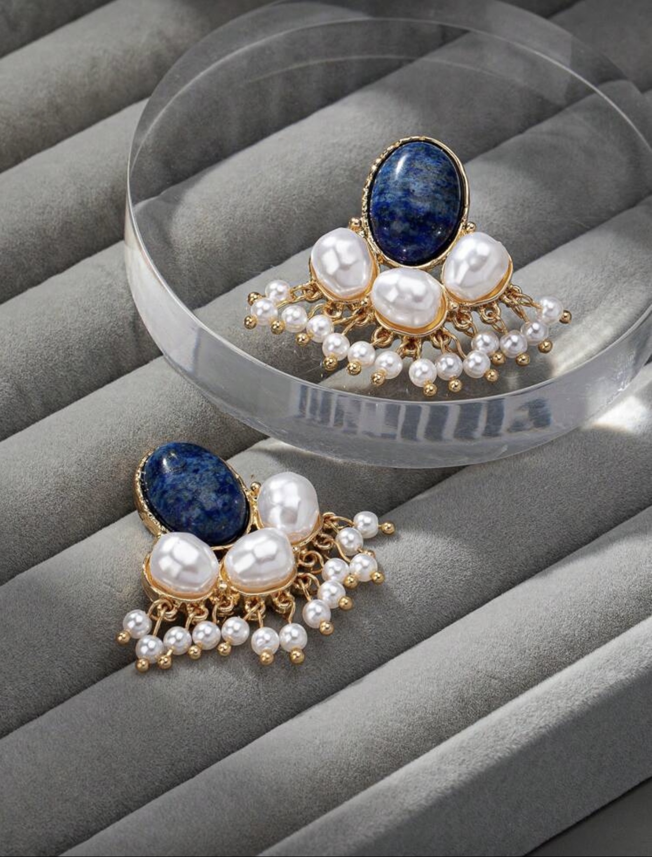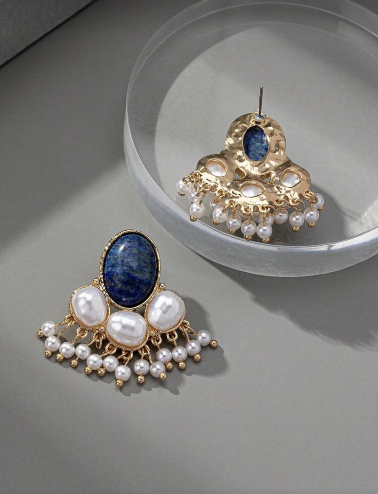 گوشواره مجلسی سنگ سرمه ای و مروارید